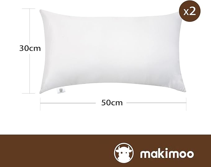 Makimoo Cushion Inserts Set of 2 – 30 x 50 cm Rectangular Pillow Fillers – Soft Hollow Fiber Inner Pads for Cushion Covers – Decorative Support for Sofa, Bed, Chair – White