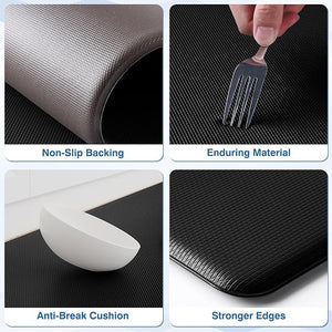 With a sleek black design and versatile sizing, these ergonomic floor mats blend seamlessly into any room while offering durable protection against daily wear and spills.